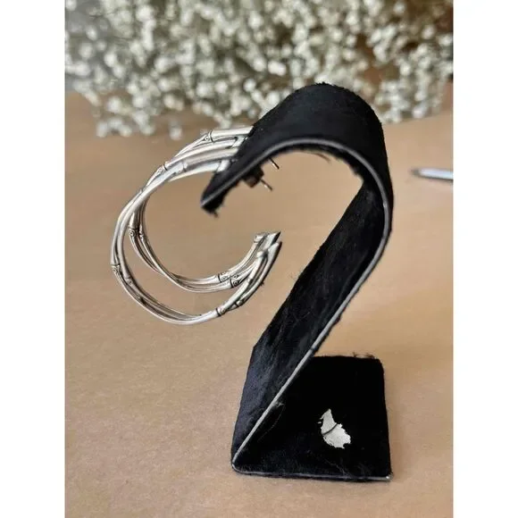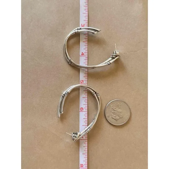 John Hardy Silver Bamboo Twist Hoop Earrings Large 2 Inch