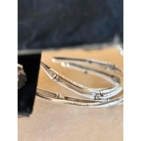 John Hardy Silver Bamboo Twist Hoop Earrings Womens Large Type Size 2 Inch DiameterThese striking John Hardy earrings feature a unique double bamboo twist design in sterling...