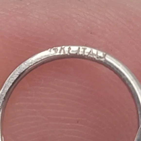 These fun earrings are 14K White Gold and feature three rows of white pearls hanging with gold beads.They are 2.5" long and 1" wide at the widest point.They weigh 5.1 gm each and have 9 pearls each.They have a lever back and are marked 14K Italy.The first gold ball at the bottom of each pearl are cut to sparkle :)So Cute!!