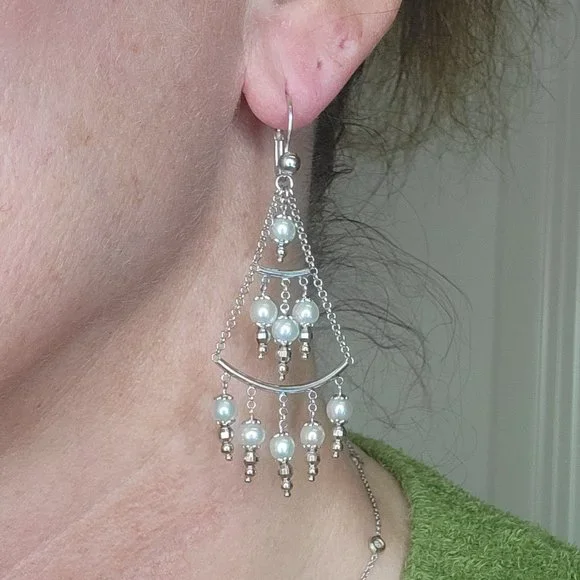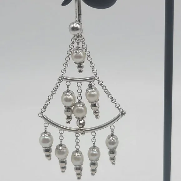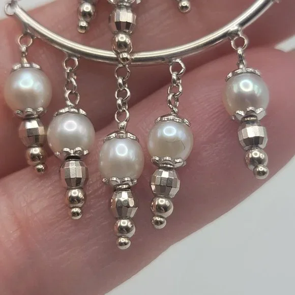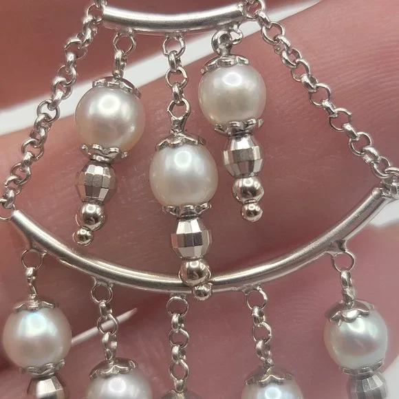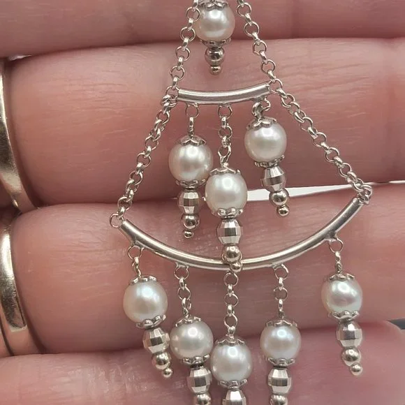 14K White Gold Pearl Chandelier Earrings