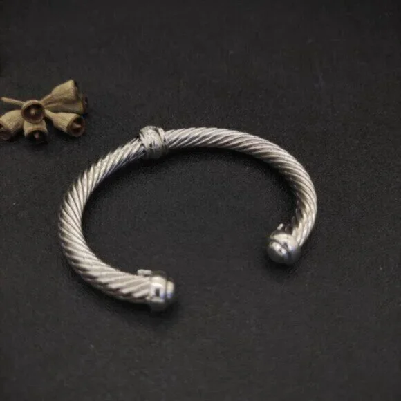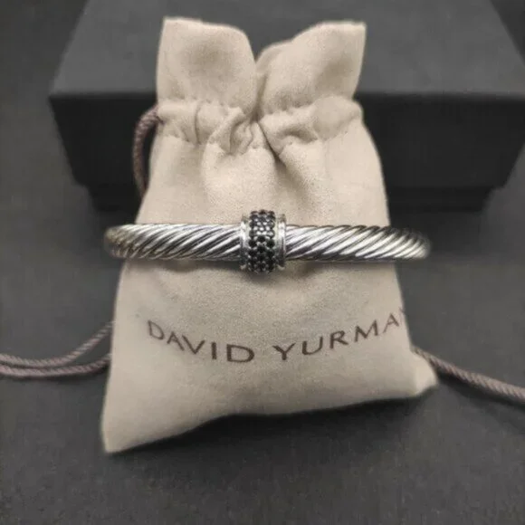 David Yurman Sterling Silver 7mm Pave Black Diamond Cable Cuff Bracelet M