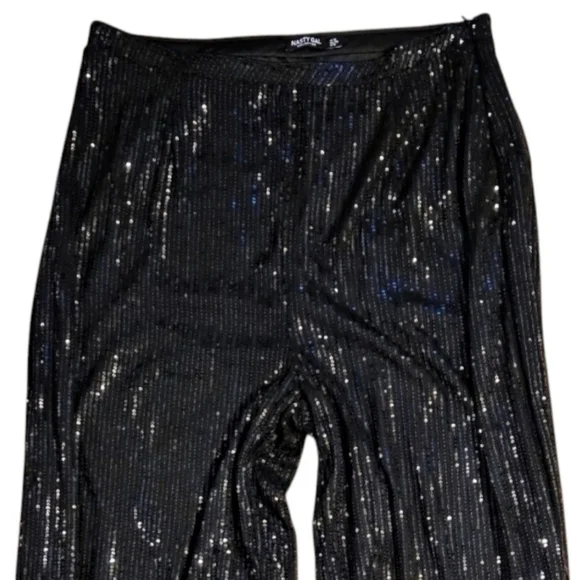 *1st Pic Is Stock*Life of the party. These Nasty Gal pants feature a wide-leg, relaxed fit silhouetteand sequin embellishment throughout. Style with matching shirt and platform...