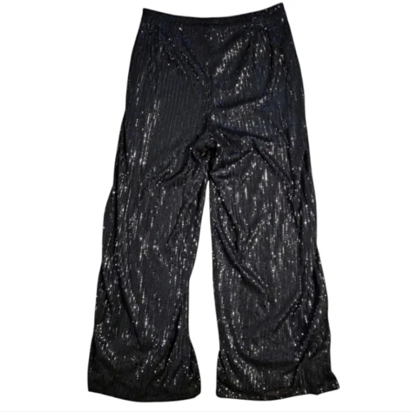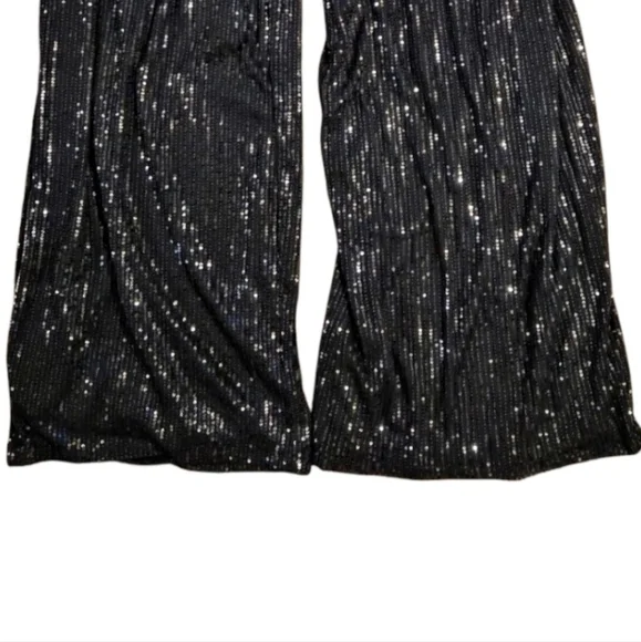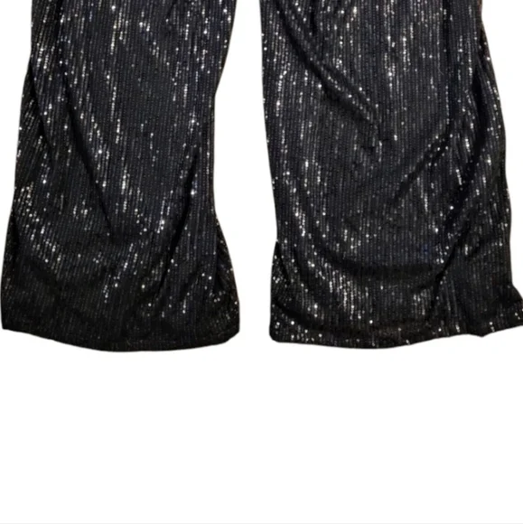 *1st Pic Is Stock*Life of the party. These Nasty Gal pants feature a wide-leg, relaxed fit silhouetteand sequin embellishment throughout. Style with matching shirt and platform boots. Size 12 in black. In awesome condition.Measurements:Waist 34" Rise 14" Inseam 34"