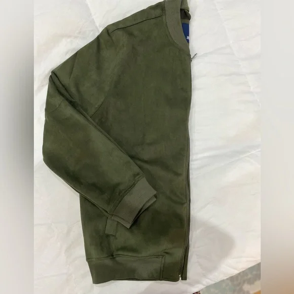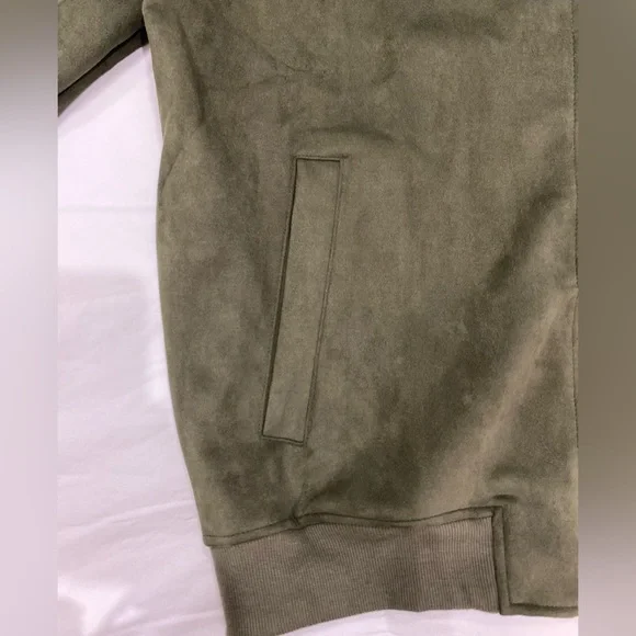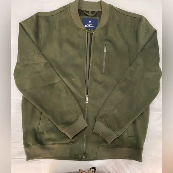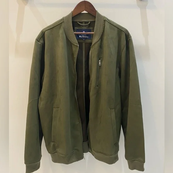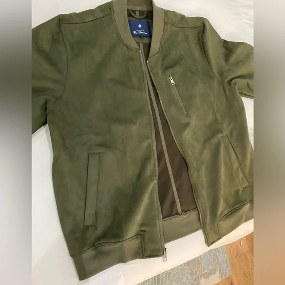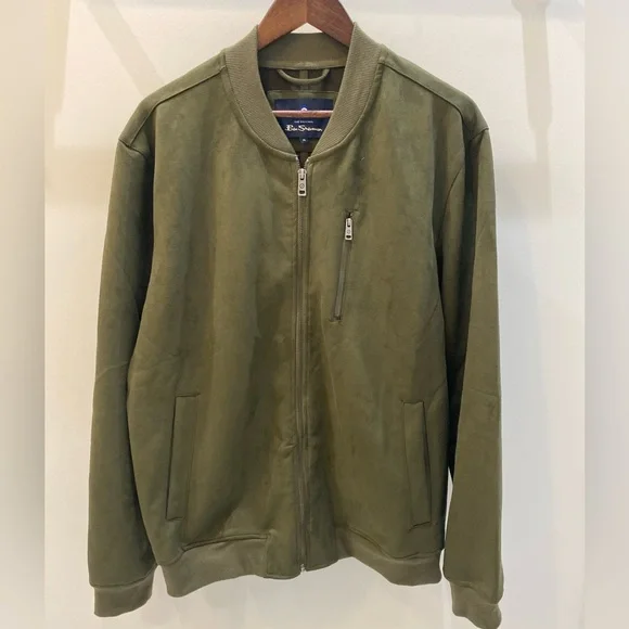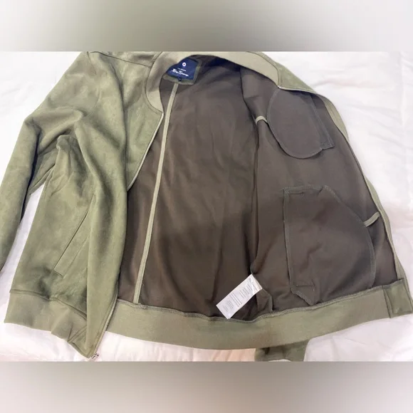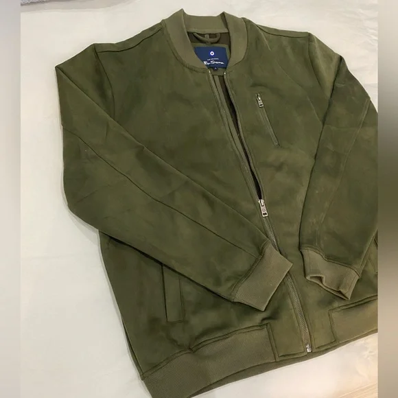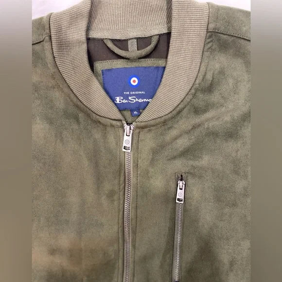 Ben Sherman Mens Faux Suede Bomber Jacket XL Full Zip Long Sleeve Olive $140 NEW