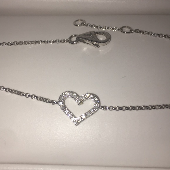 Beautiful diamond heart on delicate 14K white gold chain. Diamonds 0.09 tcw. Chain fits 7.25 wrist. Has 3 settings for best fit. Never worn. NWOT.