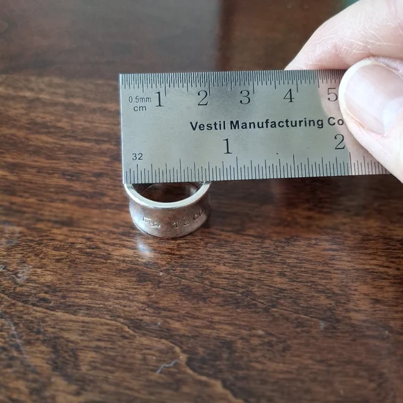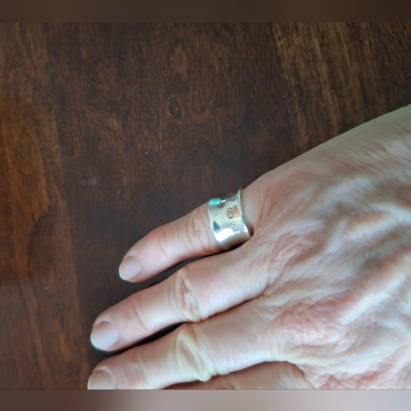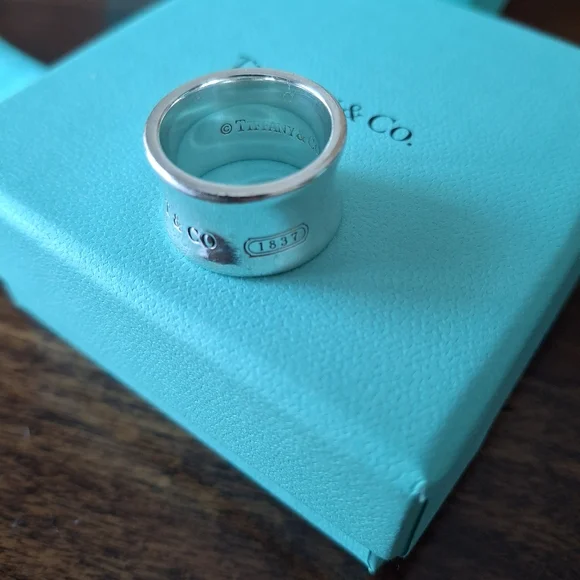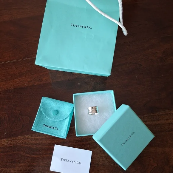 Tiffany 1837 Ring is designed with curves and contours. Modern, yet classic. Size 5-1/2 and band width is .5". Comes with bag, box and pouch as shown in image.
