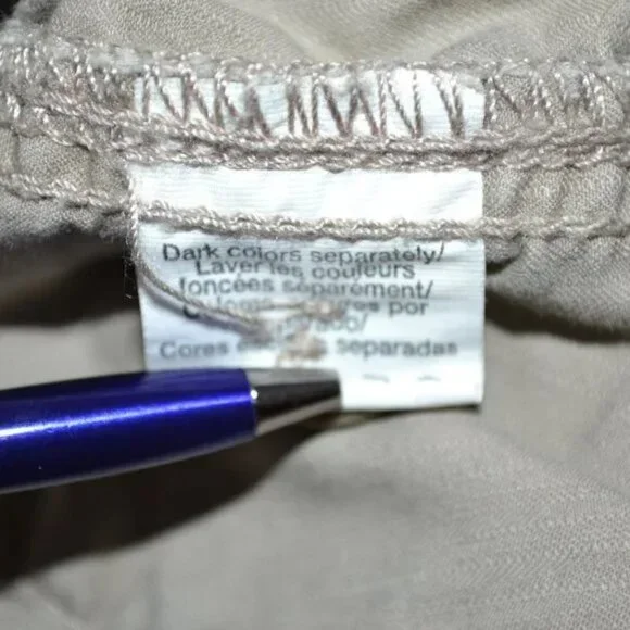 Offered is this pair of lightweight utility streetwear parachute Hip Hop pants by from my personal wardrobe ca late 90s. The pants have zip-button front closure & tie waist & ankles. The pants are in gently pre-owned average condition with still crisp material; there are several light shadows on one leg (please see images) but overall & otherwise in nice vintage condition.From a clean pet- & smoke-free home.Size 12 measured flat approx:17.5" waist uncinched.22" hip.9" rise.30" inseam.
