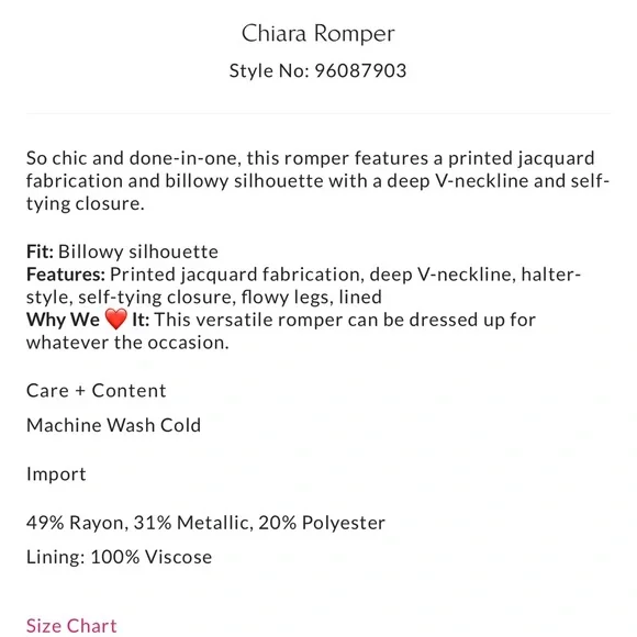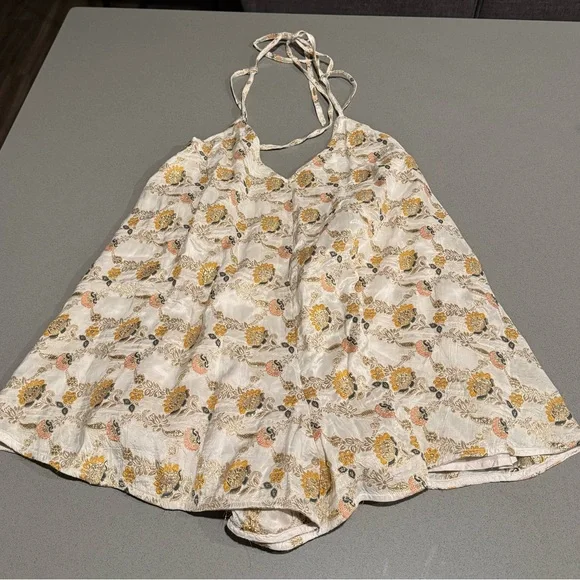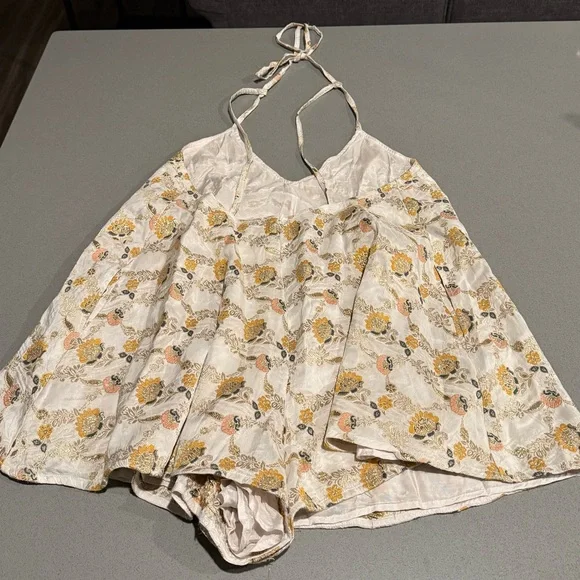 New without tags in perfect condition! Size medium.So chic and done-in-one, this romper features a printed jacquard fabrication and billowy silhouette with a deep V-neckline and self-tying closure.Fit: Billowy silhouette Features: Printed jacquard fabrication, deep V-neckline, halter-style, self-tying closure, flowy legs, lined Why We ❤ It: This versatile romper can be dressed up for whatever the occasion.
