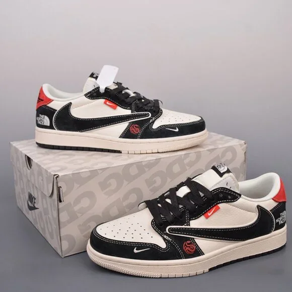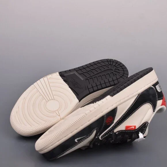 EU 42 or Men´s 8.5 or Women´s 10Black/Red/WhiteThe waist is white with Travis Scott´s iconic logo, and the left and right feet are decorated with Travis Scott´s ghost face and Jordan wings respectively.