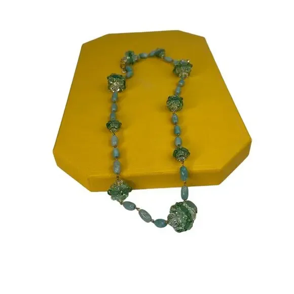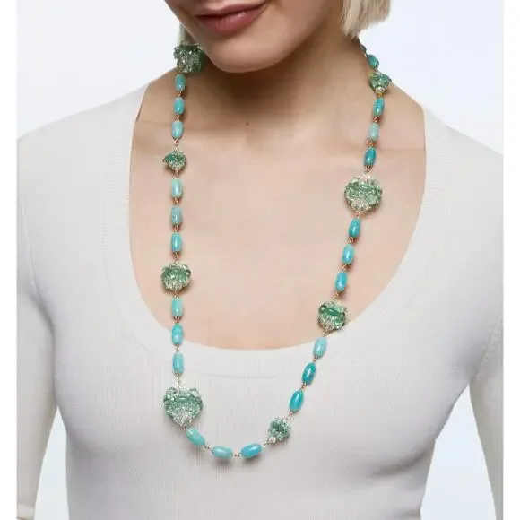 Swarovski Somnia necklace Long, Green, Gold-tone platedThis striking necklace artfully combines clusters of vibrant green crystals with polished amazonite and aventurine beads....