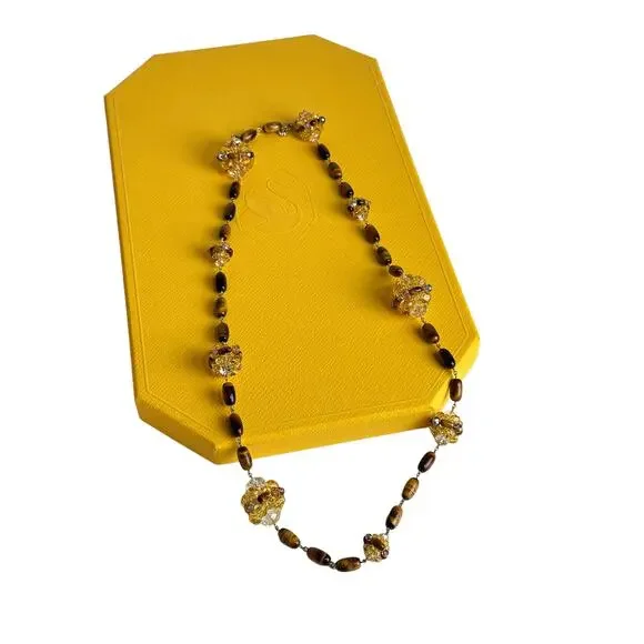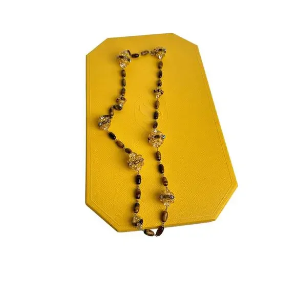 Swarovski Somnia necklace Long, Brown, Gold-tone platedInspired by bohemian bead work, this necklace is formed from clusters of earthy toned crystals and lustrous tiger eye beads....