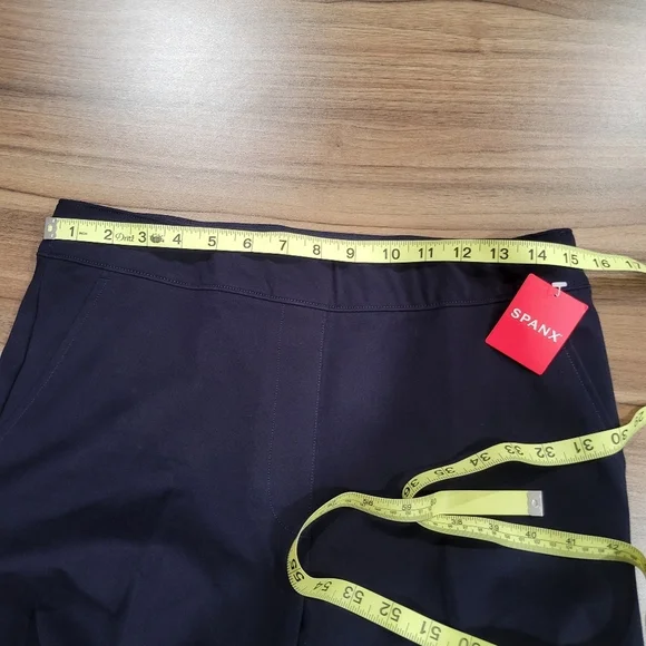 NWT SPANX Women´s Polished Ankle Slim Classic Navy Pants On The Go Size Mback pocketsThe On-the-Go Collection was designed with bi-stretch cotton for ultimate comfort and flattery. Signature pull on design, built in smoothing tummy panel and range rar of silhouettes make it the perfect wardrobe addition 24/7, 365.Pull-on design for a smooth front 4-way stretch cotton for all-day comfort Hidden tummy shaping Functional back pockets to store your necessities Machine washable for easy carePlease refer to pictures for details and approximate measurements.