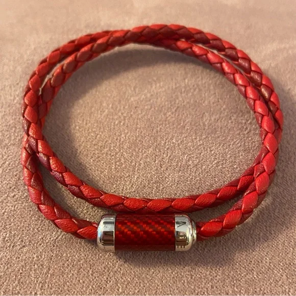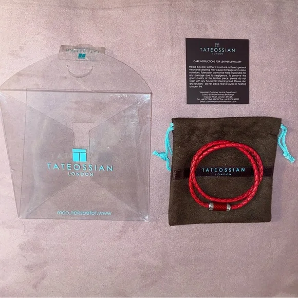 This beautiful, everyday wear bracelet combines genuine red-colored, two-tone, Italian leather, intricately braided and double wrapped into a plated, sterling silver clasp, especially engineered in our Italian workshop. Material: Plated Sterling Silver And Red LeatherNWT:Only opened to take photo for listing.Rare:Sold-out and no longer available on the Tatetossian website or elsewhere.Last two bracelets available.