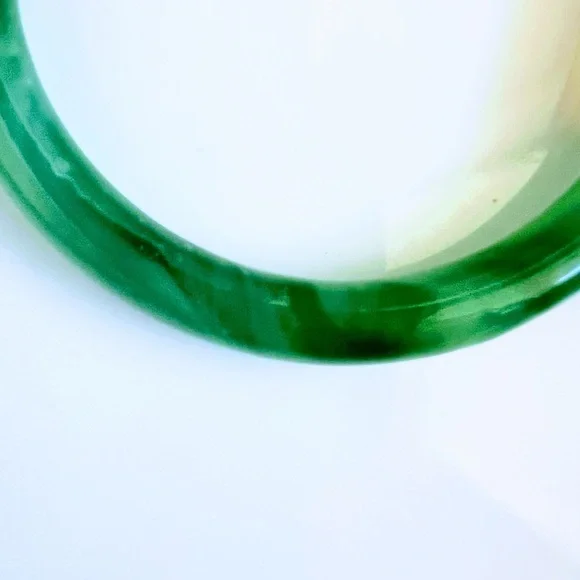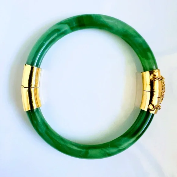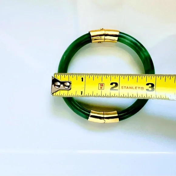 VTG Rare Chinese Spinach Green Nephrite Jade AAA 10k Gold Plated Bangle Bracelet