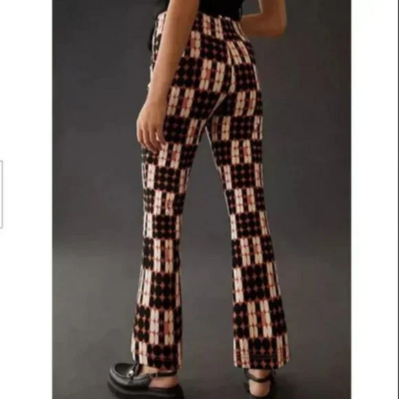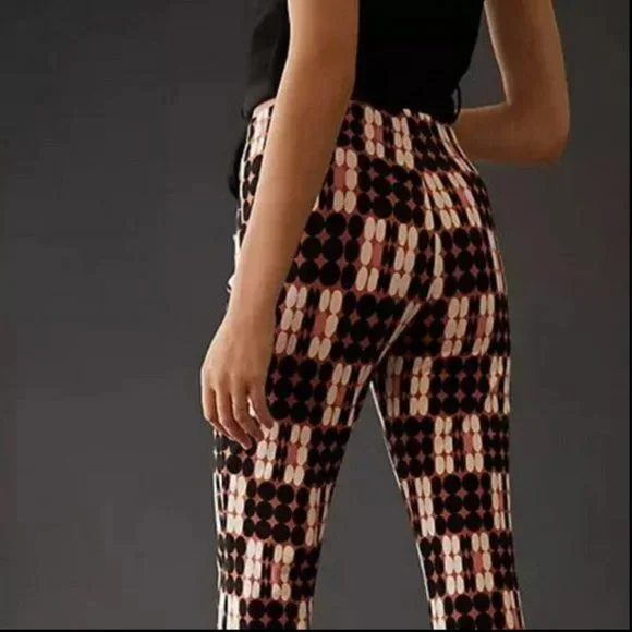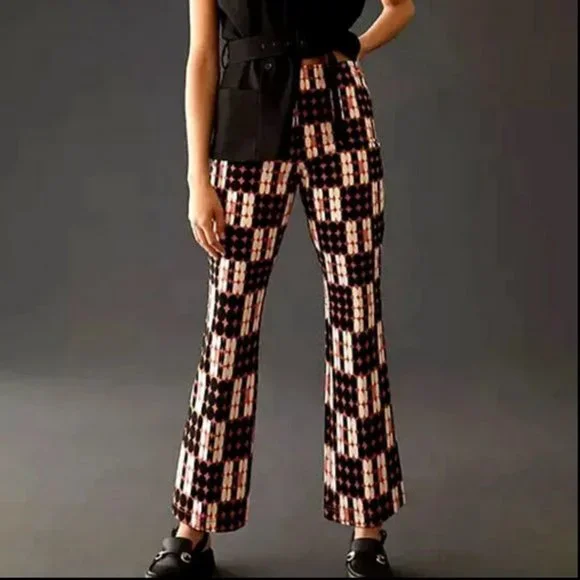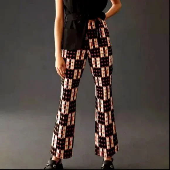 Anthropologie MaeveSize XSNew with tagThe Margot Cropped Kick Flare PantsStyle No. 4123650590216; Color Code: Brown MotifViscose, nylon, elastanePull-on stylingMachine washWaist measures 13" across does stretchRise 10"Inseam 26"