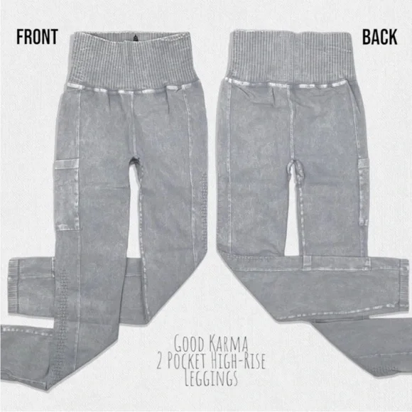 GOOD KARMA 2 POCKET HIGH RISE LEGGINGS- ICE GREYThese ultra-flattering leggings have two slip pockets on each side to stash you phone, keys, cards, and any small essentials you...