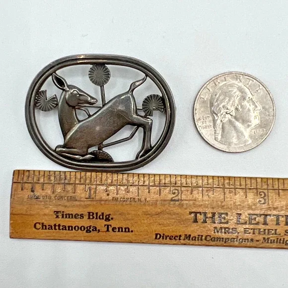 Vintage Sterling Silver Kneeling Deer Pin Brooch