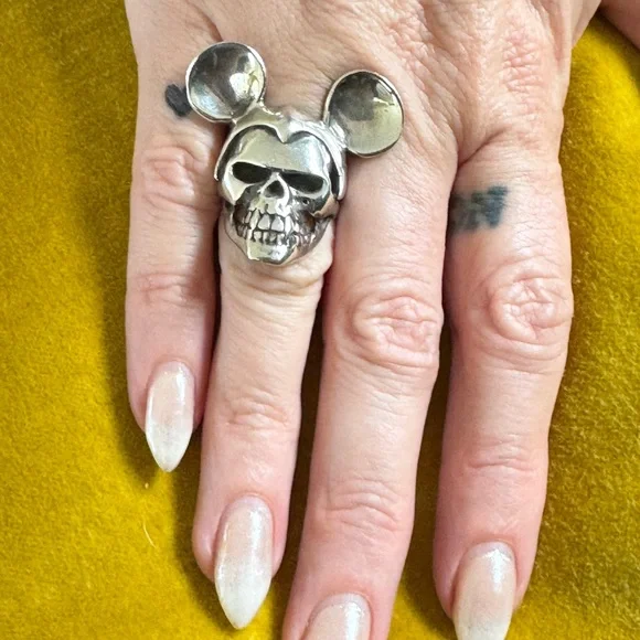 Sterling silver great frog Michael rodent ring, I would say this is a size J or approximately a us 4.5. Worn only a few times in great condition. back side of the band shows signs of wear, some light scratching but this is the bottom of the ring and not what’s seen on top of the hand.