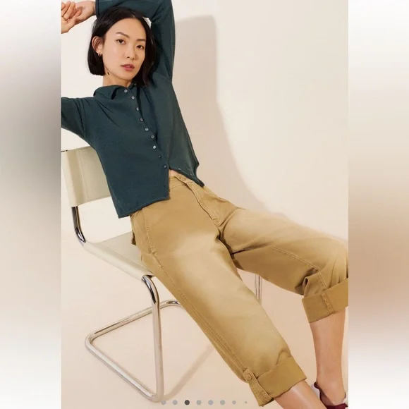 FREE PEOPLE Cleo Washed Chino Trouser PantsSize 6Waist 15”Rise 11.5”Inseam 29” (unrolled) Inseam approximately 17” rolledSturdy 100% cotton fabricForever classic and...