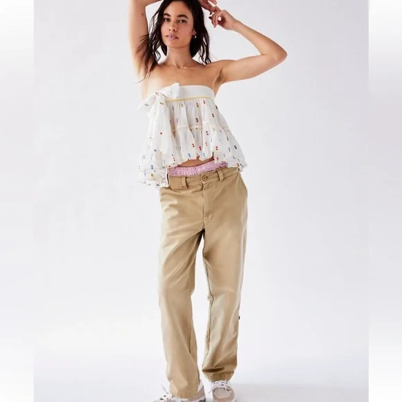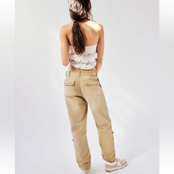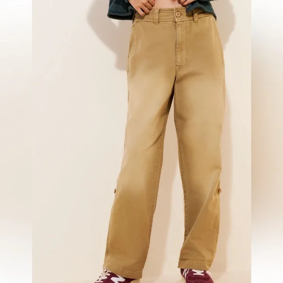 FREE PEOPLE Cleo Washed Chino Trouser PantsSize 6Waist 15”Rise 11.5”Inseam 29” (unrolled) Inseam approximately 17” rolledSturdy 100% cotton fabricForever classic and academia-inspired, these classic chino pants will be a go-to from this season to the next.Fit: Low-slung, classic slim straight fit Features: Zip fly and button closure, four-pocket design, soft-washed cotton, button detailing at the hem for convertible length Why We ❤ It: Off-duty with sporty sneakers or sleek with ballet flats, this pair has endless ways to wear.Gathering inspiration from the past and interpreting it for the present in a unique way is at the heart of the Free People aesthetic. Exclusive washes and distressing paired with feminine details like hand-stitching and contrast lace give each style its coveted, creative edge.