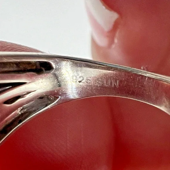 Designer SUN Sterling Silver 925 & Blue Diamonds Ring - Size 7.5See photos as part of description