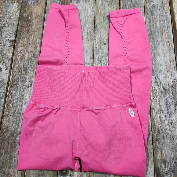 Free People High Rise 7/8 Good Karma LeggingsColor: Tropical PinkSize: M/L High-rise waist: 7/8 cropUltra soft, holds you in waist Why we love them: they´re a wear-everyday tried-and-true fave NWOT - reposhed purchase, I was advised the logo label inside the leggings was black lined by the liquidator when she purchased the leggings. Free People Movement offers performance ready activeware, practice perfect style, and beyond-the-gym staples. These ultra flattering legging transitions from brunch, Bikram, and beyond.Hand wash coldMade in USA