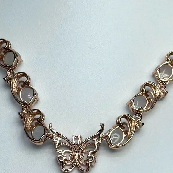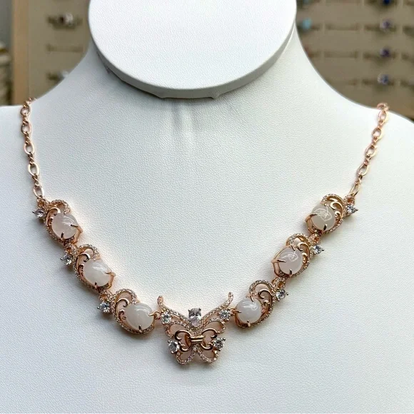 NJD3Handmade PREMIUM WHITE NEPHRITE JADEITE Jade Butterfly Necklace 18KRG S925