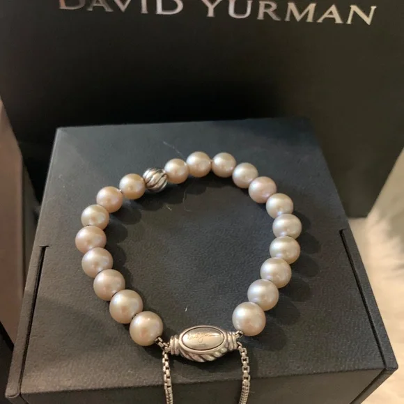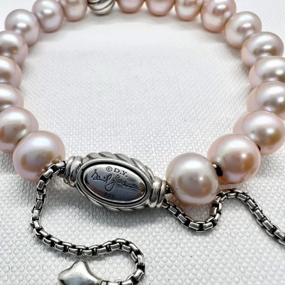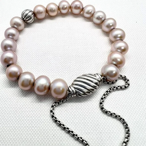 David Yurman Spiritual Beads with Pink Pearls - Excellent pre owned collection. Sterling silver, dyed pink cultured freshwater pearls. Adjustable length 6-8”Pearls 8mm diameter comes with DY box, new DY cleaning cloth and DY pouch.