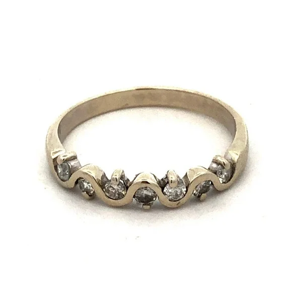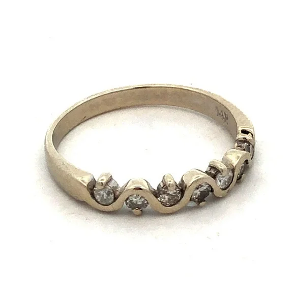 Designer KCO 14K White Gold Round Diamond Wave Wedding Anniversary Band Ring
