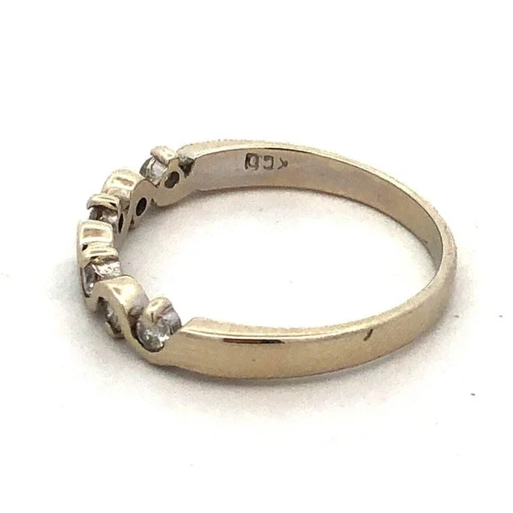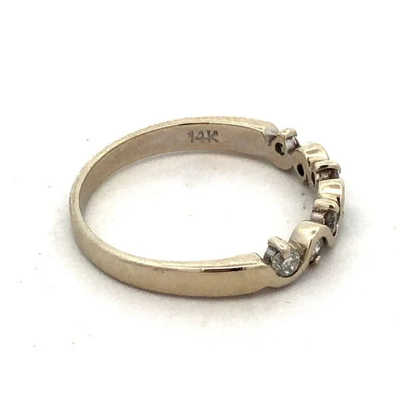 * Designer KCO 14K White Gold Round Diamond Wave Wedding Anniversary Band Ring* Ring size: 6.75 * Band width: 2.25 mm * Top of band width: 3.6 mm * Weight: 2.0 tgw * 7 Round Diamonds measure approximately 2.4 mm each * Ring can be resized for an additional fee. * Marked: KCO * 14K* Condition: As pictured. * G4843