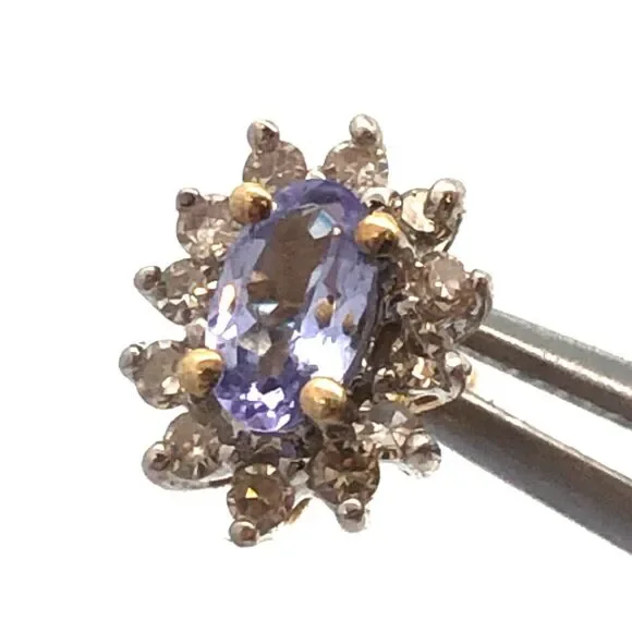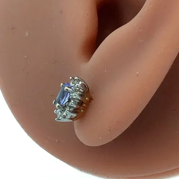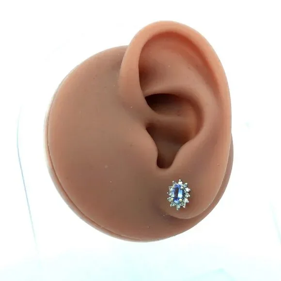 Designer AV 10K Yellow Gold Oval Tanzanite Diamond Halo December Stud Earrings