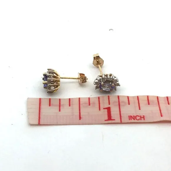 * Designer AV 10K Yellow Gold Oval Tanzanite Diamond Halo December Stud Earrings* Length: 3/8"* Width: 1/4"* Height: 3/16"* Weight: 1.4 tgw* 2 Oval Tanzanite measure approximately...