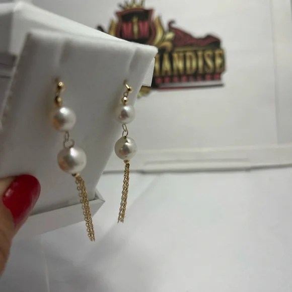 Akoya Pearl Dangling Earrings, total of 4 pearls sizes 6 mm to 7 mm. In 18 k Gold.