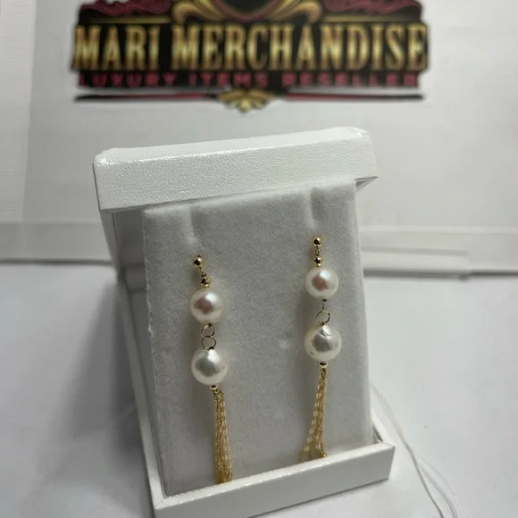 Akoya Pearl Dangling Earrings in 18 K Gold.