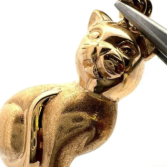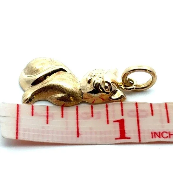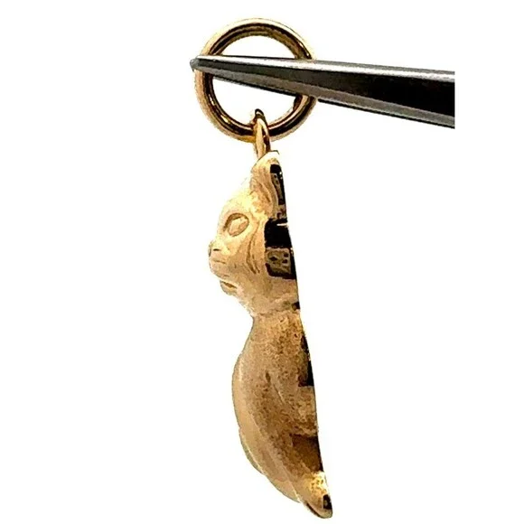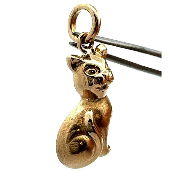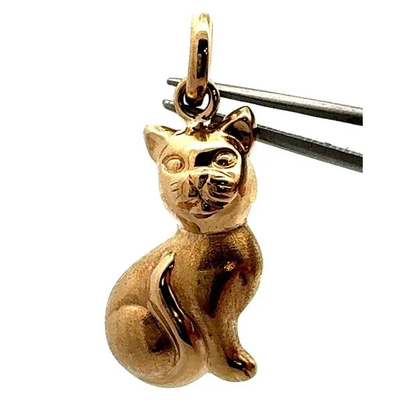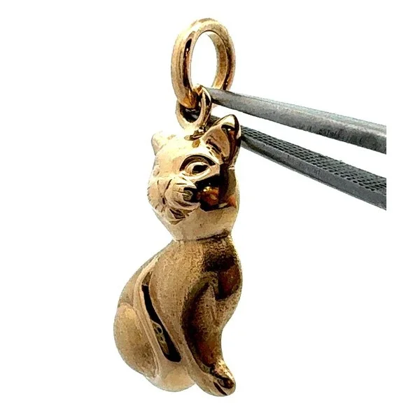 * Estate Italy 14K Yellow Gold Polished Sitting Kitty Cat Feline Charm Pendant* Length including bale: 1-1/8"* Bale inside measurements: 5.5 mm* Width: 1/2"* Weight: 2.5 g*...