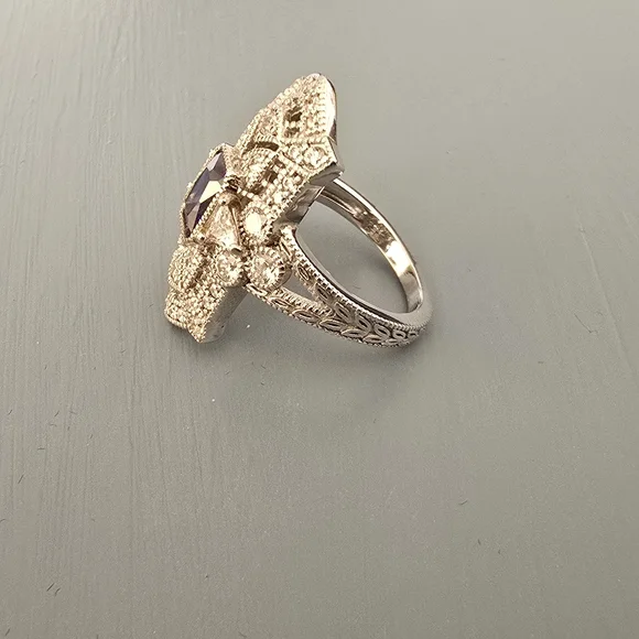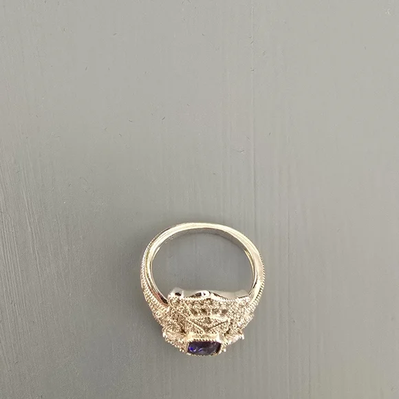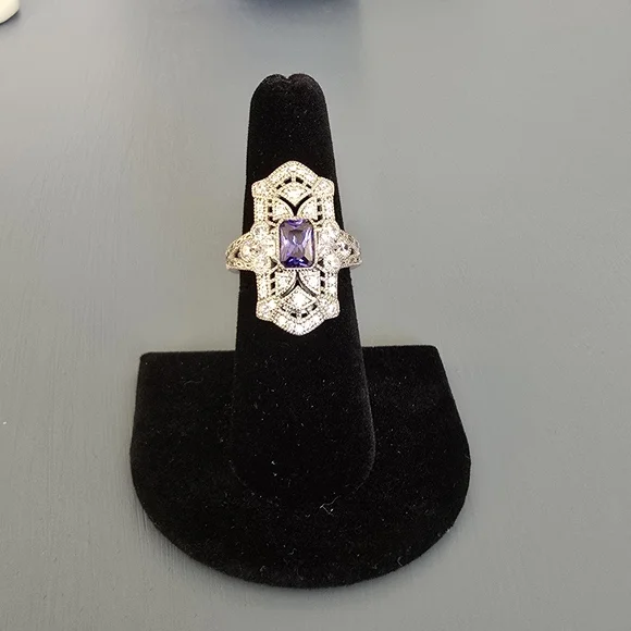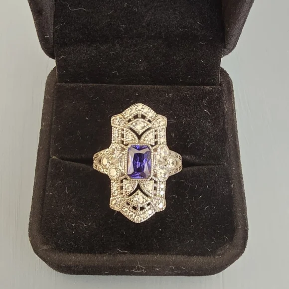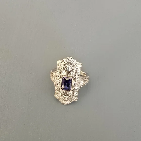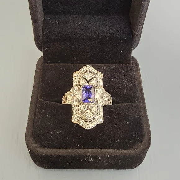 .925 STERLING SILVER RINGMAIN STONE LAB CREATED BLUE SAPPHIRE 1eaSECONDARY STONES 40ea CUBIC ZIRCONIA SIZE 7