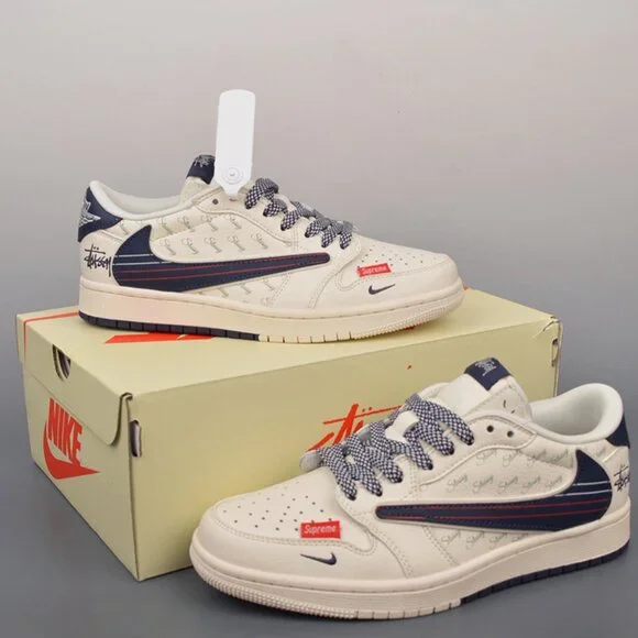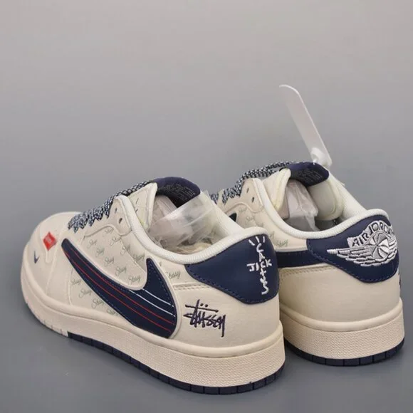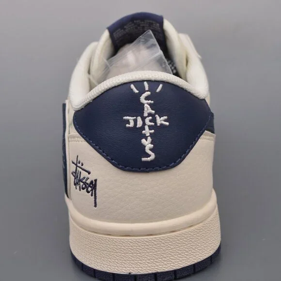 EU 41 or Men´s 8 or Women´s 9.5The waist is white and embellished with Travis Scott´s iconic logo, and the left and right feet are decorated with Travis Scott´s ghost face and Jordan´s flying wings respectively.