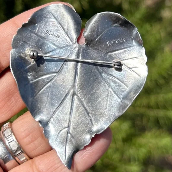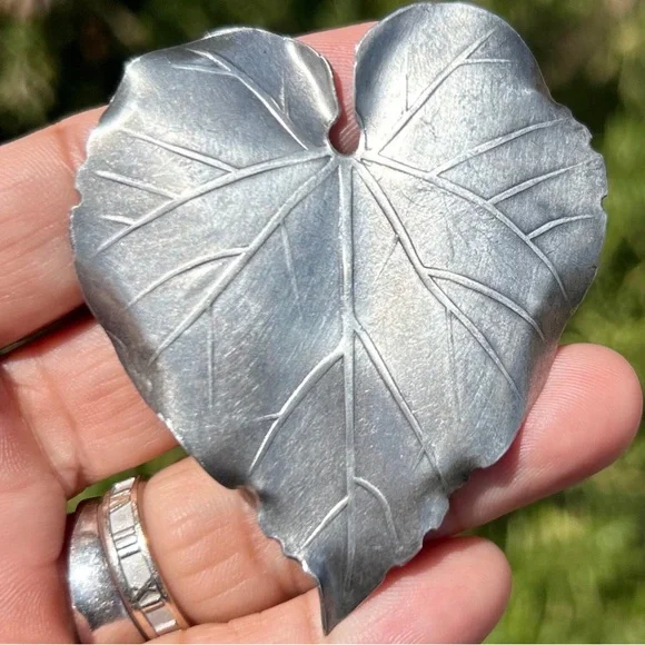vintage sterling silver Rare unique Ming´s Honolulu hawaii taro leaf brooch pin. . Signed ***Designer´s marks. .Size about 2.25 “ x 2.50”. Weight 13.59 grams. . Good condition with some minor wears due to it´s age.Please see pictures for size and condition. From smoke free and pet free home .Elegant silver leaf-shaped pendant. Perfect for adding a touch of nature to your style.