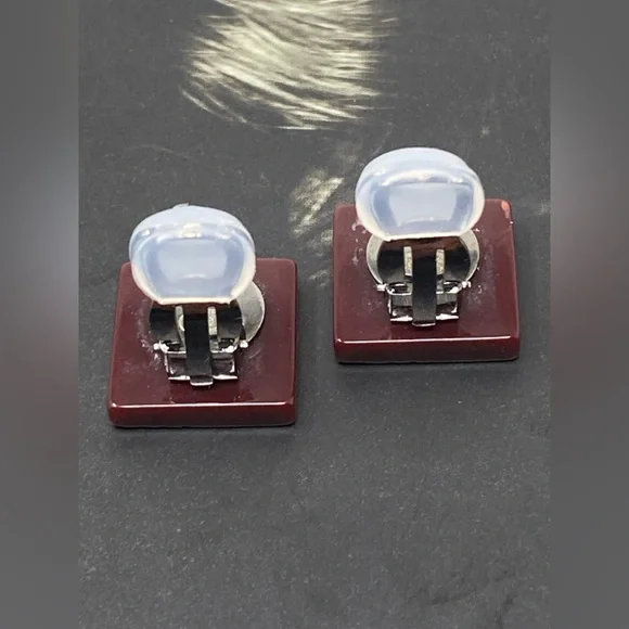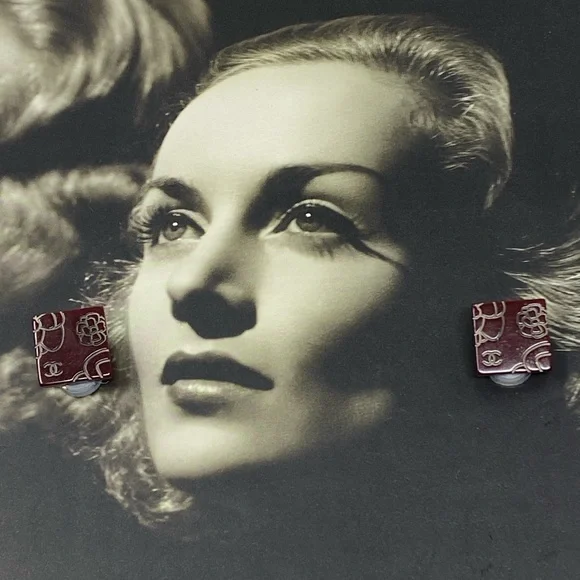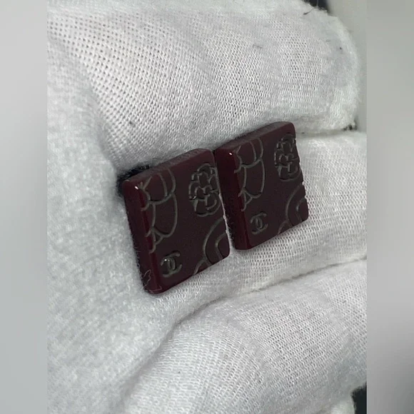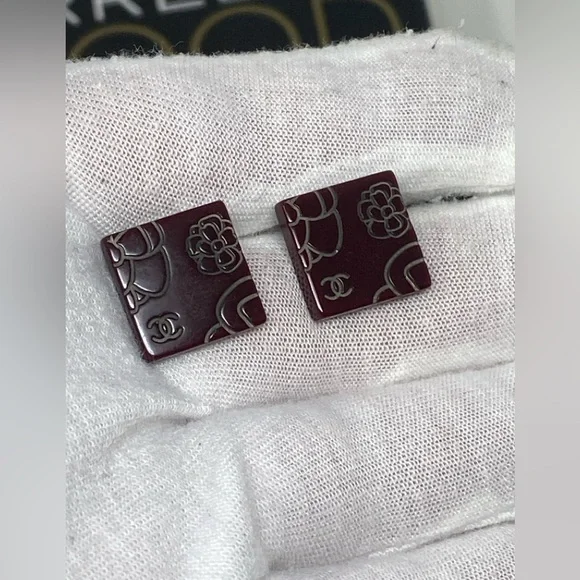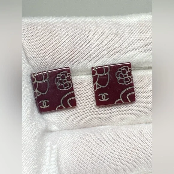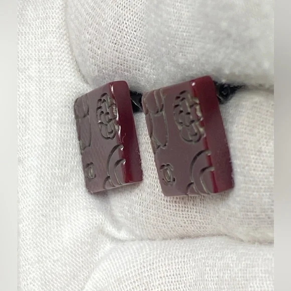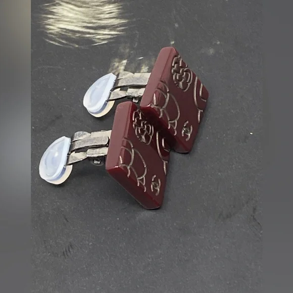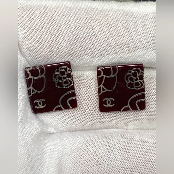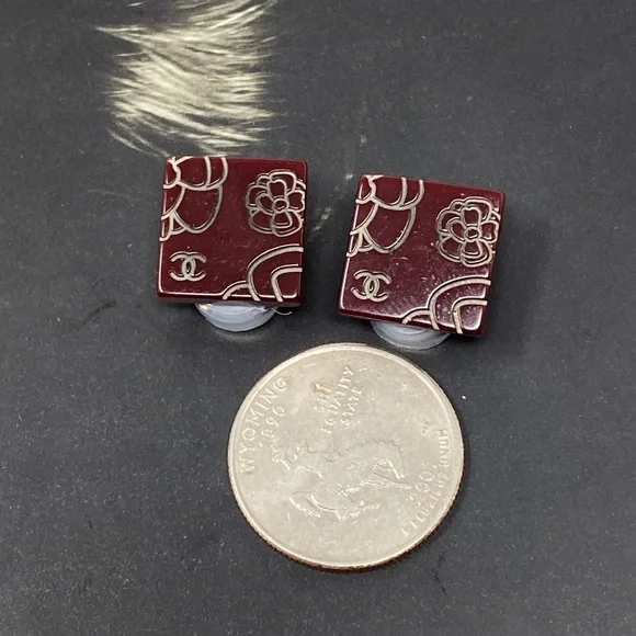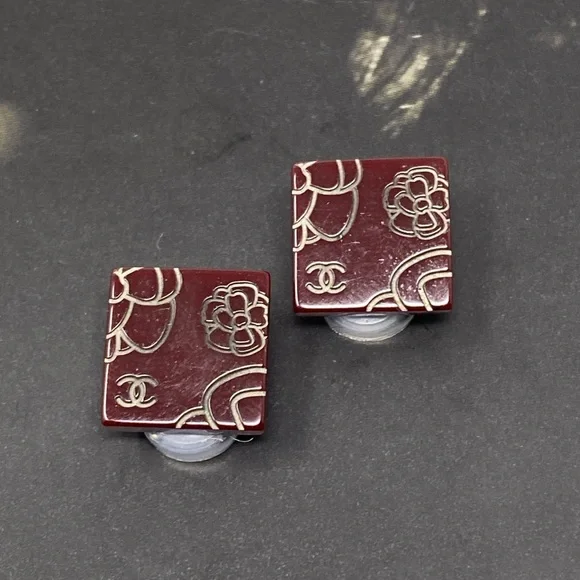 Beautiful clip on earringsBrown/BurgundyResin with Camellia and CC LogoIn great conditionPlease see all attached photos