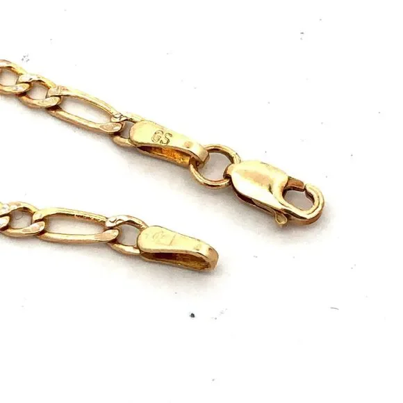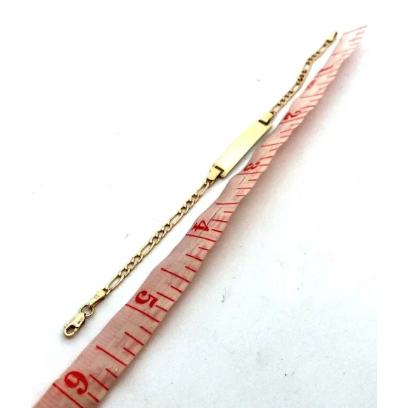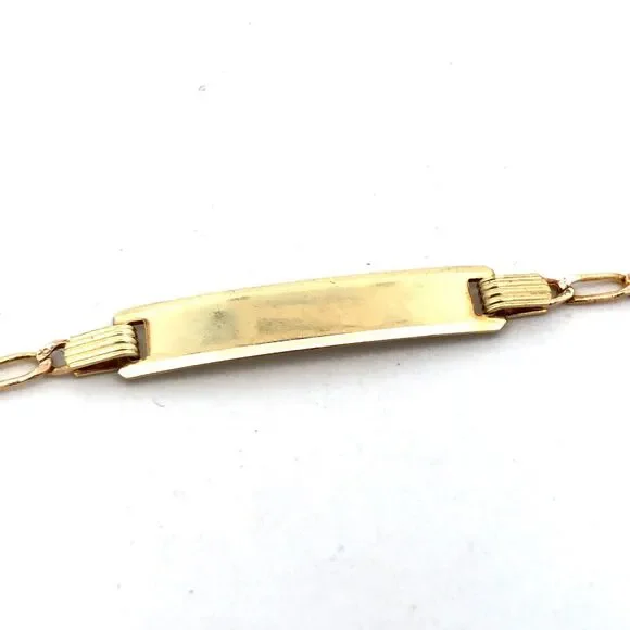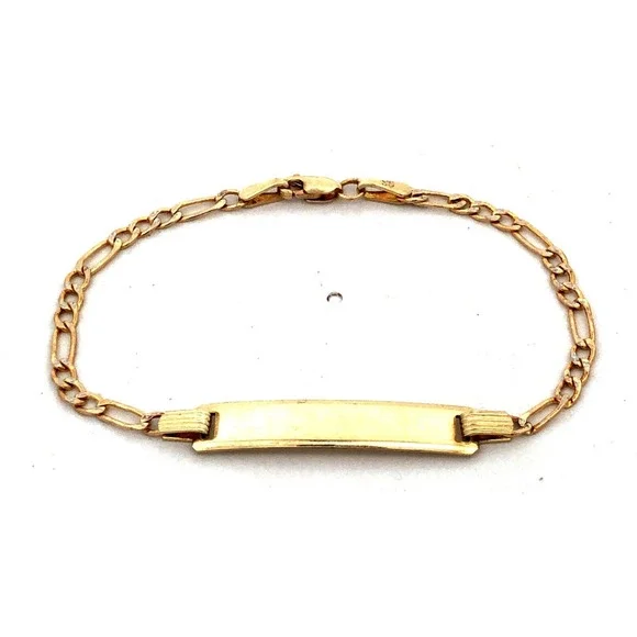 Designer GS 10KT Yellow Gold Engravable Bar Figaro Link Chain ID Bracelet
