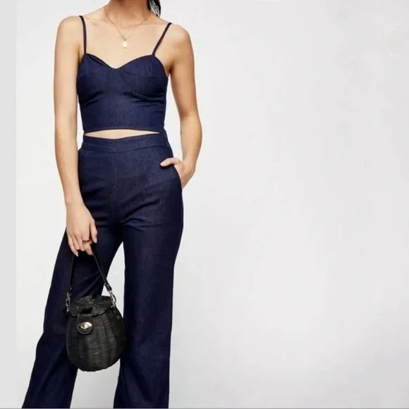3X1 NYC Peek A Boo Denim Jumpsuit Size Medium preowned no stains rips or holes measurements armpit to armpit 16” waist 14.5” inseam 27” side pockets and adjustable shoulder...