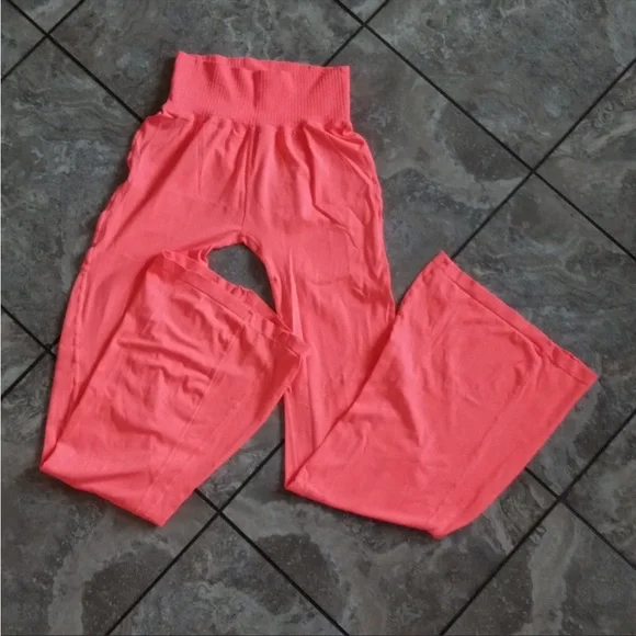NWOT Free People Good Karma Flare Leggings. Neon Coral Size XS/S (0-6)