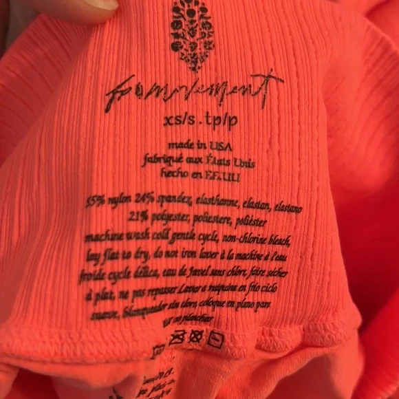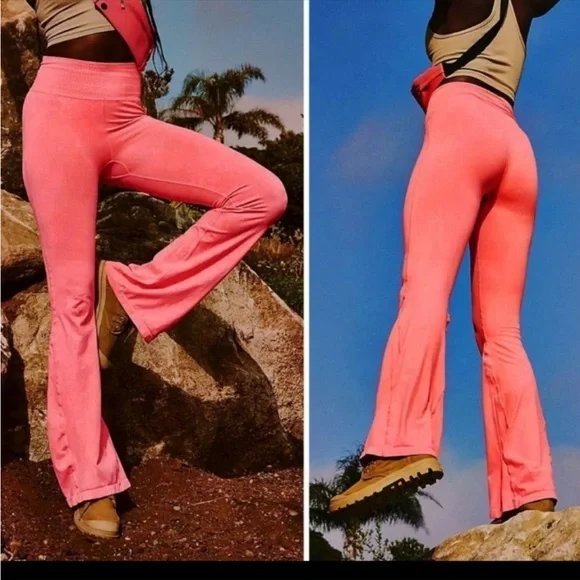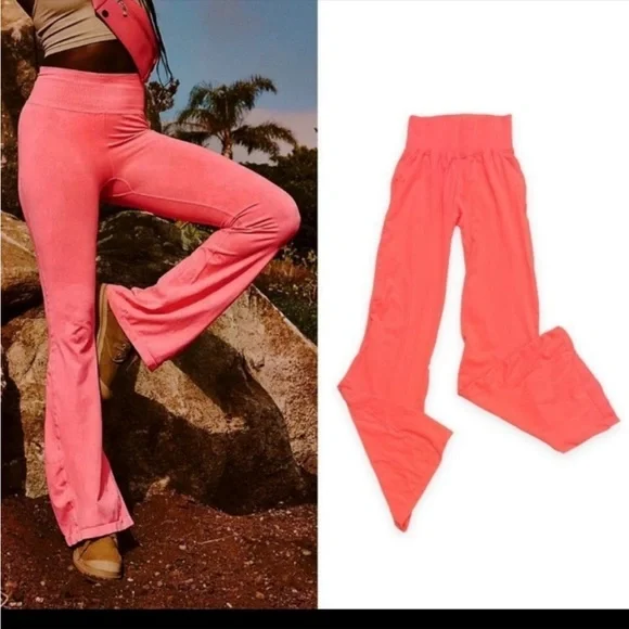 Brand New. Never worn. 92% Nylon, 8% Spandex.Bright watermelon color. Everyone’s favorite Good Karma Leggings now with a little extra flair! Featuring the collection’s iconic high-rise waistband, and so sleek natural fabric, these flares are the perfect pair for workouts and rest days alike.Pull-on styleFour-way stretch fitUPF Rated fabricUltra-soft four-way stretchFP MovementA destination for the life well-lived, Free People Movement offers performance-ready activewear, practice-perfect styles and beyond-the-gym staples. We believe in the power of community, in supporting and lifting each other up and always #movingtogether.This item was bought from a wholesaler and listed as NWT, but the product was never tagged to be sold.