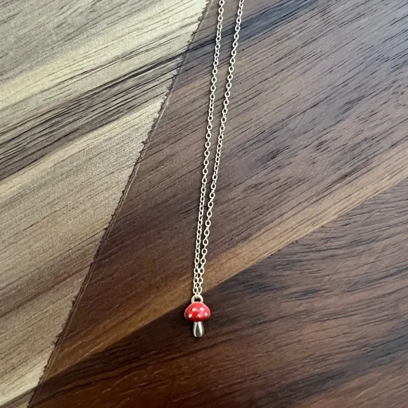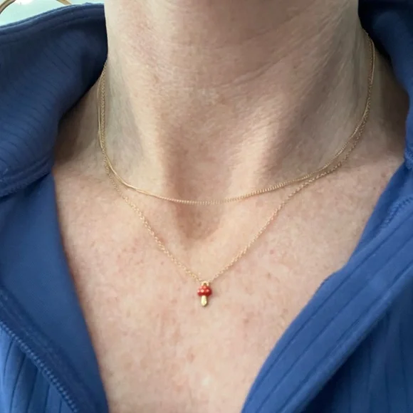 14k SOLID GOLD mushroom necklace. 16 inches long.