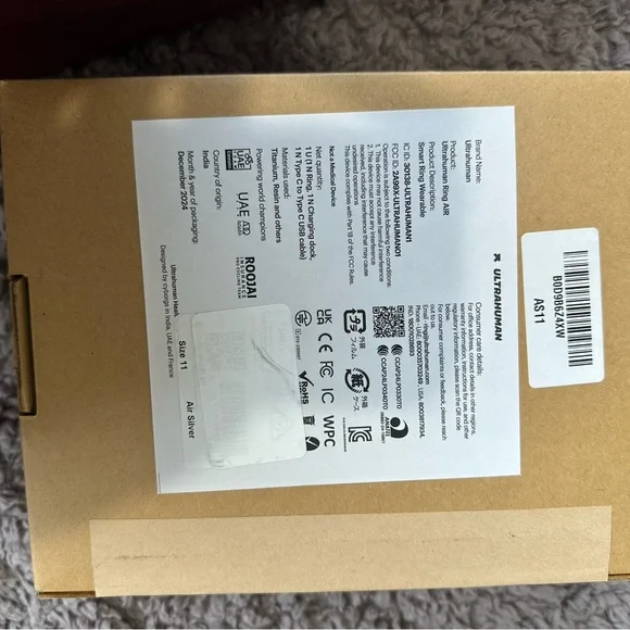 Sleek black smart ring. Ultrahuman Air ring. lightly used. comes with charger and ring. Ultra human ring Size 11 l. light wear and tear.