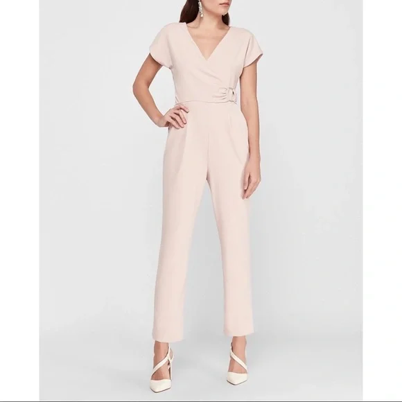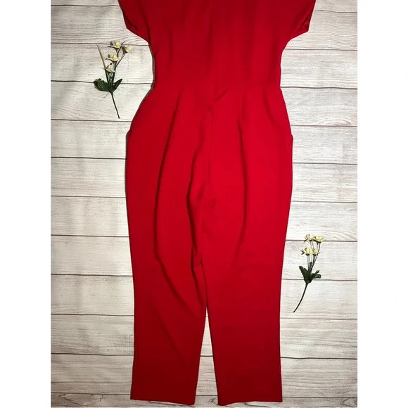 Express Wrap Front O-Ring Jumpsuit• New without tags• Red• Faux wrap front • V-neck• Hidden back hook and zip closure• Short cap sleeves• Side o-ring accent• Slant hand pockets• Tapered leg• Lined• Polyester/SpandexFeel free to ask any questions or submit any offers! ☺️