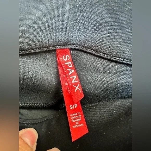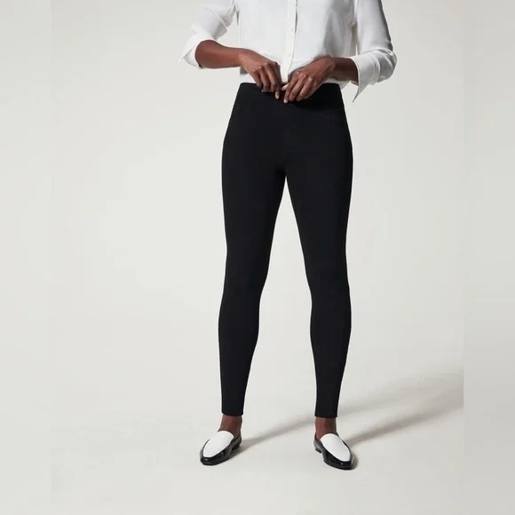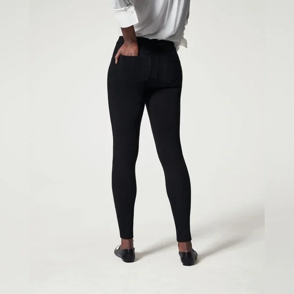 SPANX Jean-ish Ankle Leggings in black Hidden tummy shaping Faux-front pockets and functional back pockets create classic jean look Hits at natural waist for great coverage and no muffin top Jean-ish Leggings feature a soft-knit fabric that feels like leggings and looks like your favorite jeans. With an interior shaping panel, this flattering style keeps you smooth and ultra-comfortable.