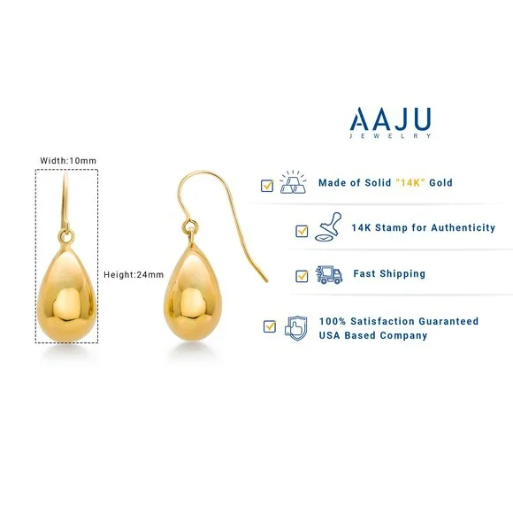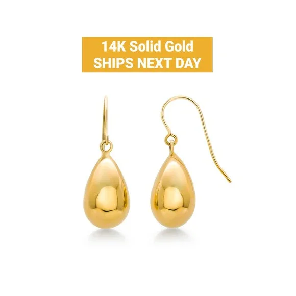 Solid 14K Yellow Gold Puffed Tear Drop Dangle Earrings, Gold Tear Drop Earrings, Drop Earrings, Water Drop Earrings, Dangle Earrings.This 14k solid yellow gold puffed teardrop dangle earrings is shiny and gorgeous. Best jewelry for women, girls to attend parties, weddings or any other activities. .CRAFTED : 14K solid yellow gold for a life-time luster. Stamped 14k, high polished finish. Posts ensure are securely and comfortably in place throughout your daily life..SPECIFICATIONS & SIZES: Earrings Size : 24x10mm. .PERFECT GIFT: Comes in a nice gift box. Ideal gifts for Valentine´s Day, Mother´s Day, Anniversary Day and Birthday to your girlfriend, wife and mom and daughter. More InformationMetal Type: 14K Yellow GoldMetal Stamp: 14KEarring Back Finding: Fish Hook Back