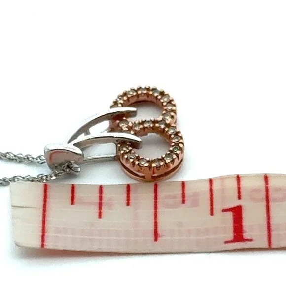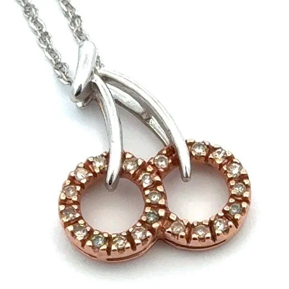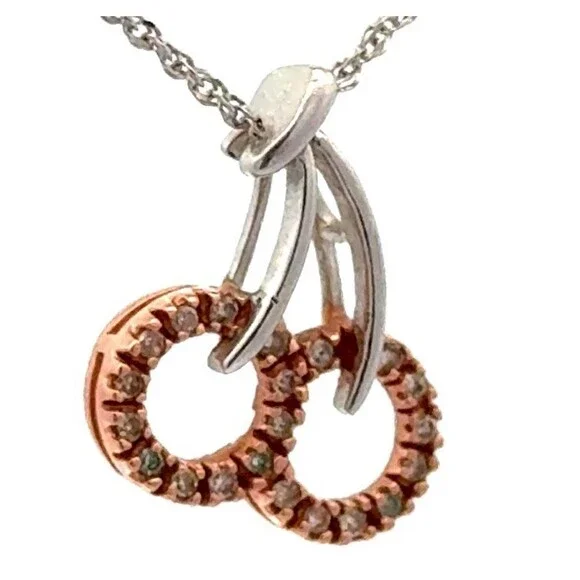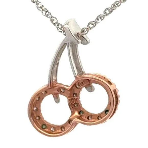 Italian Designer 10k Gold Two Toned Diamond Pair of Cherries Pendant Necklace