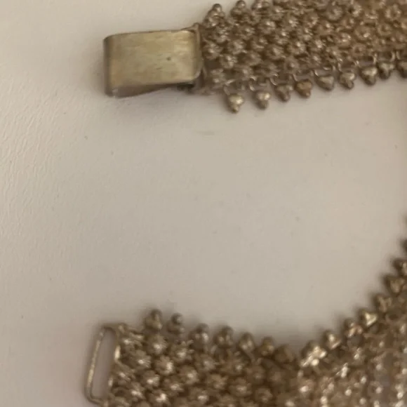 Lovely handmade silver necklace from the Philippines. Marked 925 on clasp. Choker style Preowned. Delicate resembles lace.